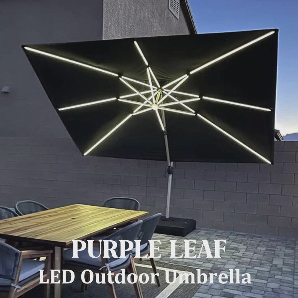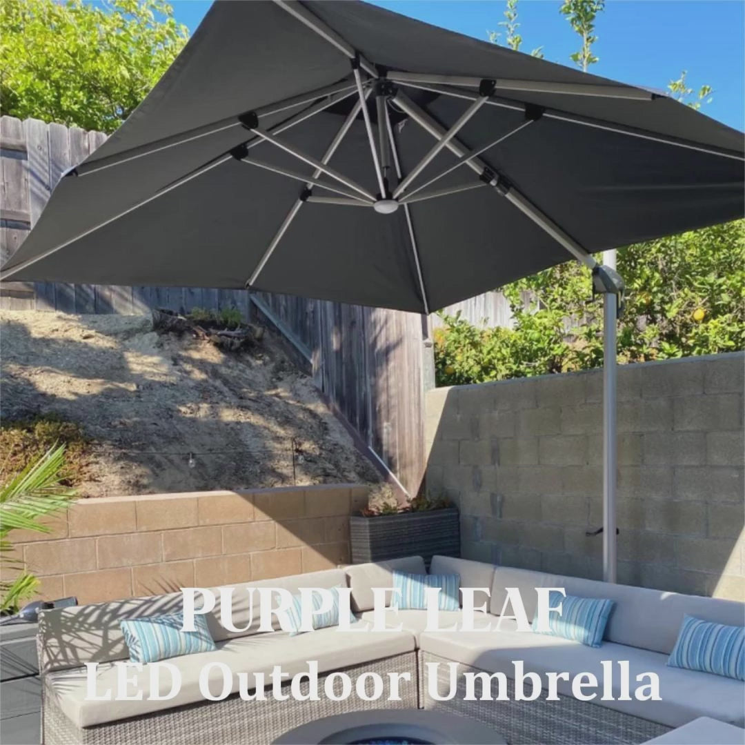 [ Sturdy Frame Guarantee ] Full aluminum rib and 8 heavy duty ribs with LED tubes, anti-oxidation spray paint, long service life. This cantilever umbrella features a sturdy aluminum frame to help ensure stability in all conditions, providing greater support for strength and durability.