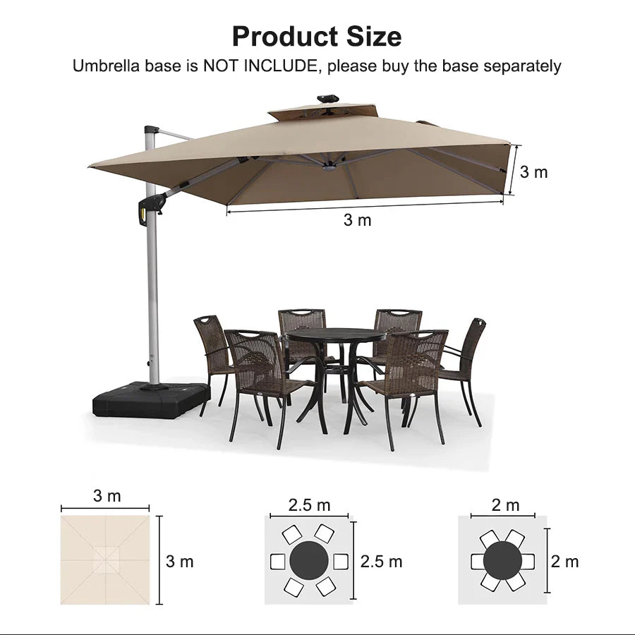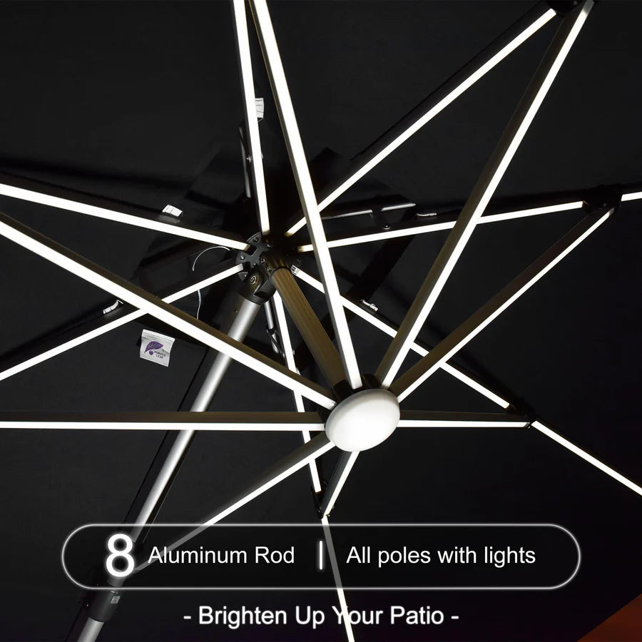 [ Sturdy Frame Guarantee ] Full aluminum rib and 8 heavy duty ribs with LED tubes, anti-oxidation spray paint, long service life. This cantilever umbrella features a sturdy aluminum frame to help ensure stability in all conditions, providing greater support for strength and durability.