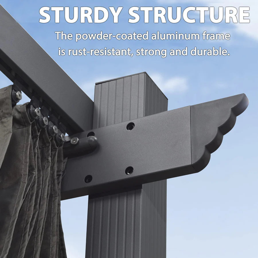 [ Sturdy and Durable ] Wind rating: 48km/h. Our metal pergolas are built to last with heavy duty-extruded aluminum coated with a powder coat finish. The pergolas are engineered from the ground up to add strength while providing 4 pre-drilled holes on each pillar that can fix any kind of floor.
