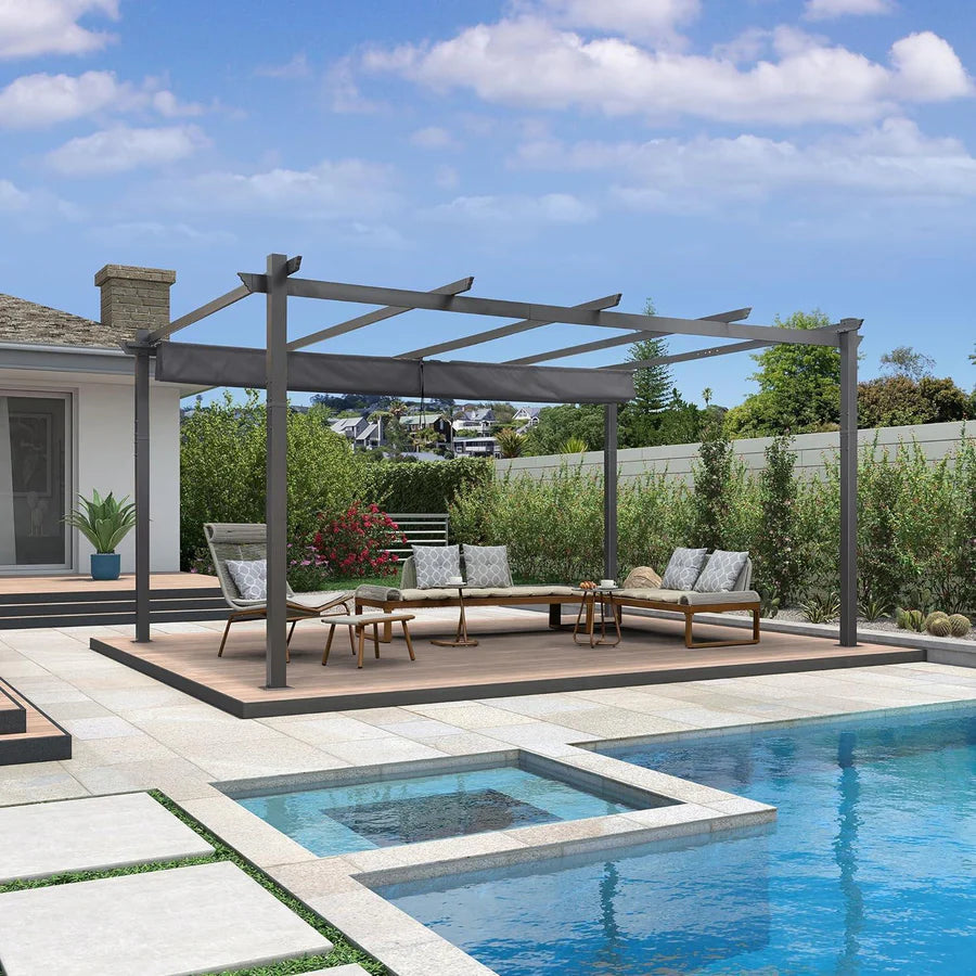 [ Design Philosophy ] Purple Leaf retractable pergolas are a blend of elegance and understated simplicity. Discover the versatility of a striking aluminum pergola to revolutionize every scenery you enjoy.