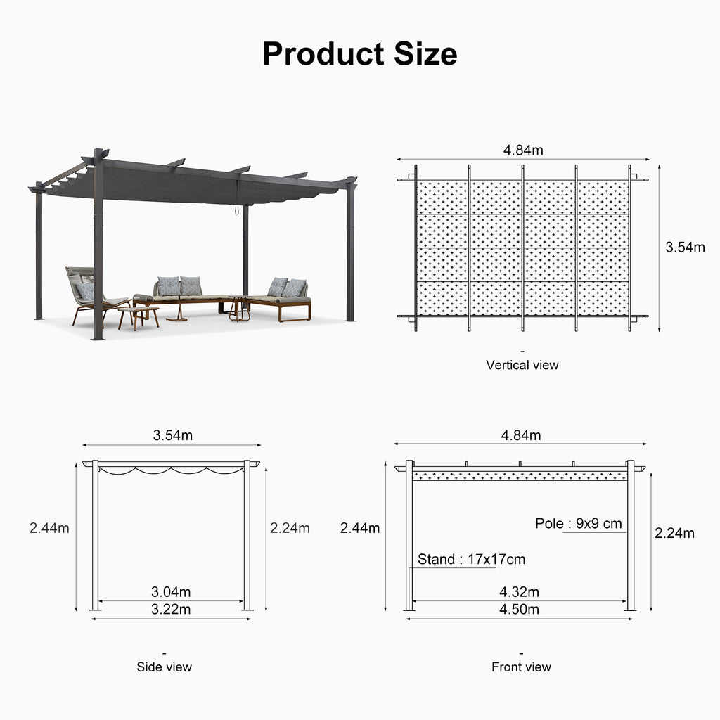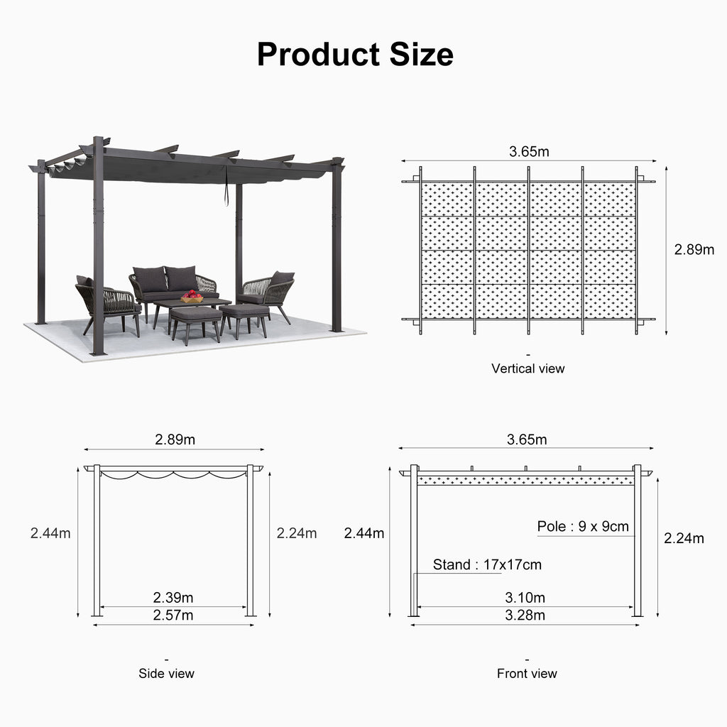 PURPLE LEAF Outdoor Retractable Pergola with Sun Shade Canopy Patio Aluminum Pergola for Garden