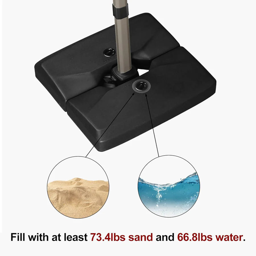 Large Capacity:It is recommended to add at least 73.4lbs of sand and 66.8lbs of water to keep the cantilever umbrella stable.